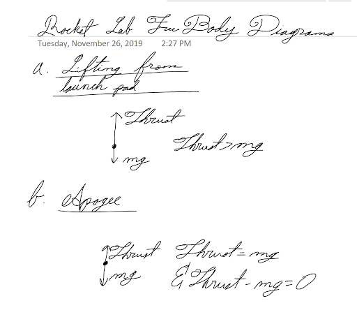 This lab main objective of this lab is to launch a projectile into the air while passing certain criteria given by the lab. The purpose of the lab is to discover and understand how to use and counteract physical properties to make a projectile fly high and straight, and how to use physical principles to make an egg land safely against the force of gravity. Moreover, the purpose of the lab is to use mathematical formulas associated with the concepts and laws of physics to not only check our results but see if and where human error or other confounding variables affected the rocket. Another purpose of the lab is to deepen our communication, team work skills, and expose us to real world scenarios of the physical world. We also work on our construction skills due to the fact all parts besides the projectile itself must be made, not bought, and we work on our professional skills and work ethic by being exposed to deadlines.
